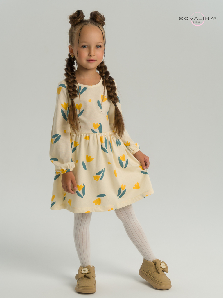 Красивое платье для девочки от бренда SOVAlina. Выполнено из дышащего и комфортного полотна кулирной глади, состав ткани 100% хлопок. Благодаря воздухопроницаемости материала, идеально подходит в сади... Показать описаниек и на утренник, а так же для праздника или фотосессии. Рукава-фонарики добавят оригинальность образу. Нарядное трикотажное платье с длинным рукавом - это универсальная вещь детского гардероба. Обращаем Ваше внимание, фото выполнено в условиях студийного освещения, при естественном свете цвет товара может иметь другие оттенки. Платье для девочки представлено на рост 98, 104, 110, 116, 122, 128 что соответствует возрасту 2 года, 3 года, 4 года, 5, 6, 7 лет. Минимальный оптовый заказ для новичков 5000 руб. Доставка по России и странам СНГ.