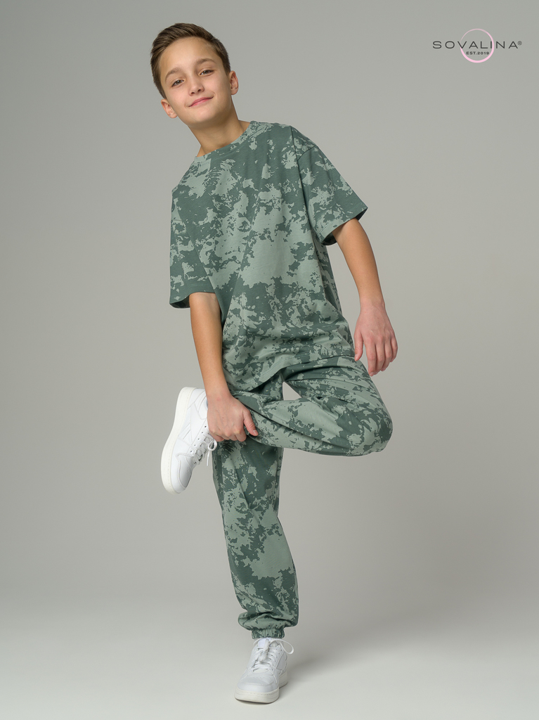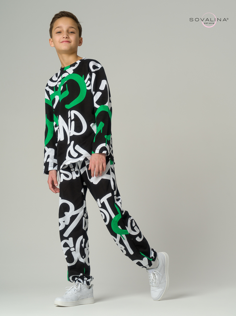 Легкий хлопковый комплект для юных мальчиков и подростков от бренда SOVAlina. Детский спортивный костюмчик двойка состоит из легкой кофты лонг с принтом. Он выполнен из тонкого и прочного трикотажа, ч... Показать описанието делает его идеальным на каждый день. Модный комплект также включает штаны на резинке и с карманами, имеют комфортную посадку для активного отдыха, спортивных игр и мероприятий. Резинка в брюках имеется не только в поясе, она присутствует и внизу каждой ноги как манжеты. Футболка с длинными рукавами и актуальным дизайном добавляет стильный акцент этому комплекту. Свободная кофточка и брюки изготовлены из хлопка, что обеспечивает максимальный комфорт и свободу движений. Костюм подойдет для дома, для сна и в садик, так как это дышащий материал. Этот тонкий и легкий комплект с лонгсливом также подходит как форма для тренировок, физкультуры и спорта. Выполнен из высококачественных материалов, производства Турция, чтобы обеспечить долговечность и комфорт.