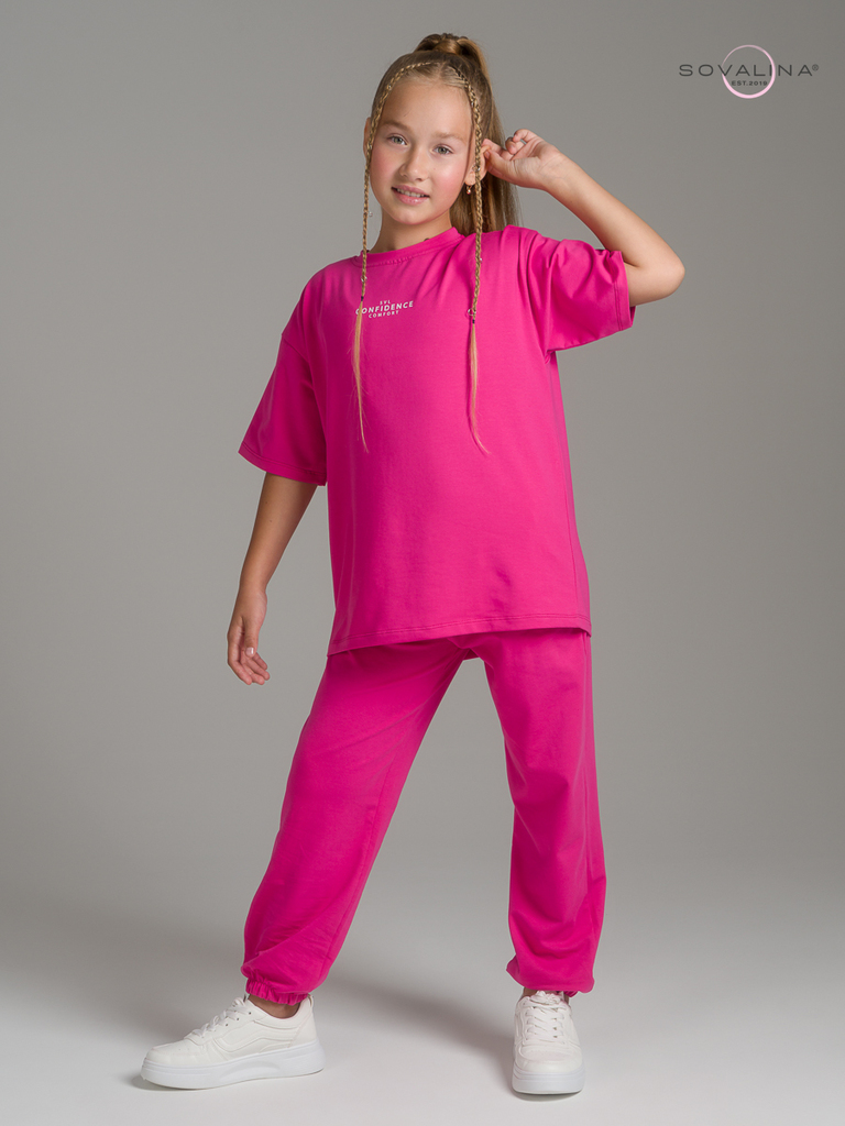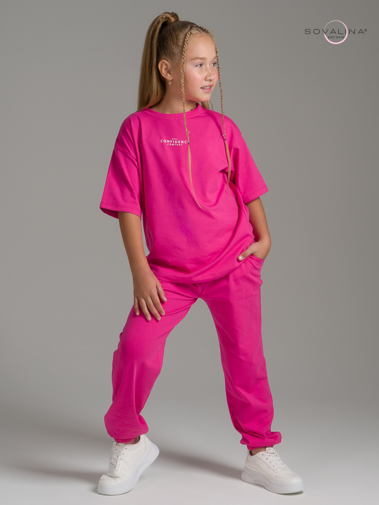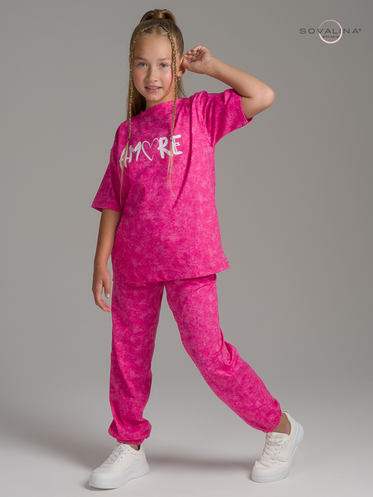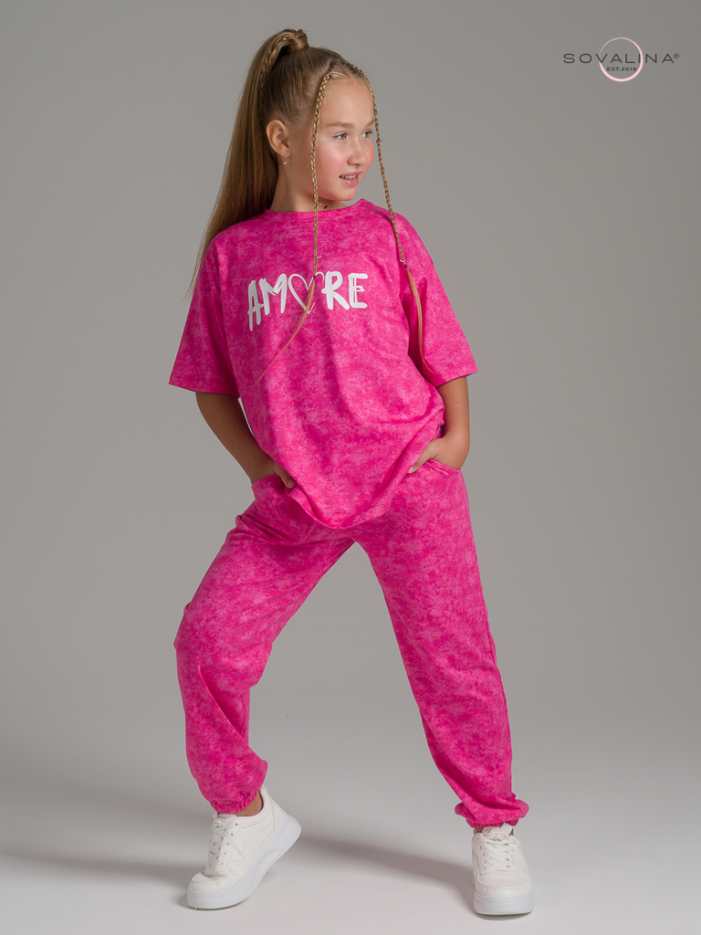 Легкий хлопковый комплект для подростков и юных девочек от бренда SOVAlina. Детский спортивный костюмчик двойка состоит из легкой и широкой футболки с принтом. Она выполнена из тонкого и прочного трик... Показать описаниеотажа, что делает ее идеальной на каждый день. Модный комплект также включает штаны на резинке и с карманами, имеют комфортную посадку для активного отдыха, спортивных игр и мероприятий. Майка с короткими рукавами и актуальным дизайном добавляет стильный акцент этому комплекту. Свободная футболка оверсайз и брюки изготовлены из хлопка, что обеспечивает максимальный комфорт и свободу движений. Костюм подойдет и для дома и на выход, так как это дышащий материал. Этот тонкий и легкий комплект также подходит как форма для тренировок, физкультуры. Выполнен из высококачественных материалов, производства Турция, чтобы обеспечить долговечность и комфорт. Задуман специально - стандартные спортивки и оверсайз футболка.
