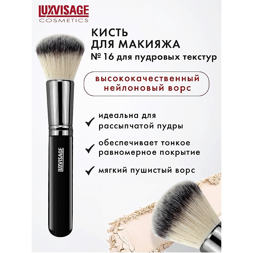 При помощи кисти косметической №16 для пудровых текстур теперь возможно сделать профессиональный макияж прямо у себя дома. Ее мягкий ворс наносит пудру тончайшим слоем и отлично фиксирует макияж. Ворс... Показать описаниеинки округлой формы расположены плотно друг к другу, что позволяет наносить пудру и другие компактные продукты невероятно легко и равномерно. Достаточно сделать несколько взмахов для того, чтобы лицо покрыла незримая вуаль, способная сделать вас еще более привлекательной!