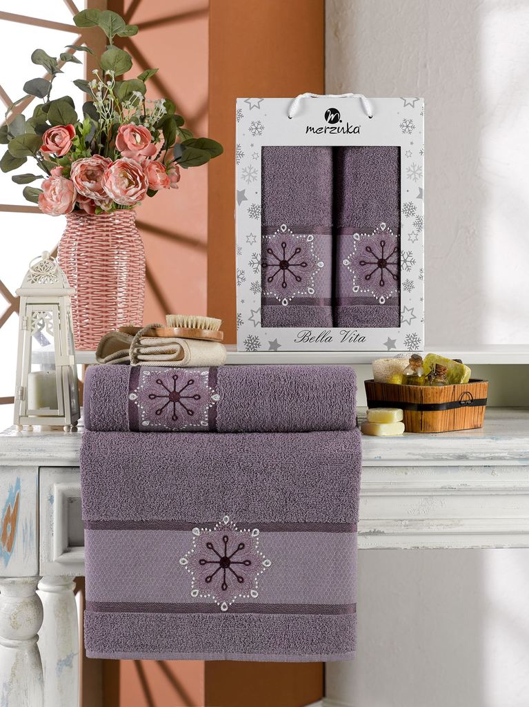 11615 Сиреневый  BELLA VITA махра (50х90+70х140 ) в коробке Набор полотенец MERZUKA