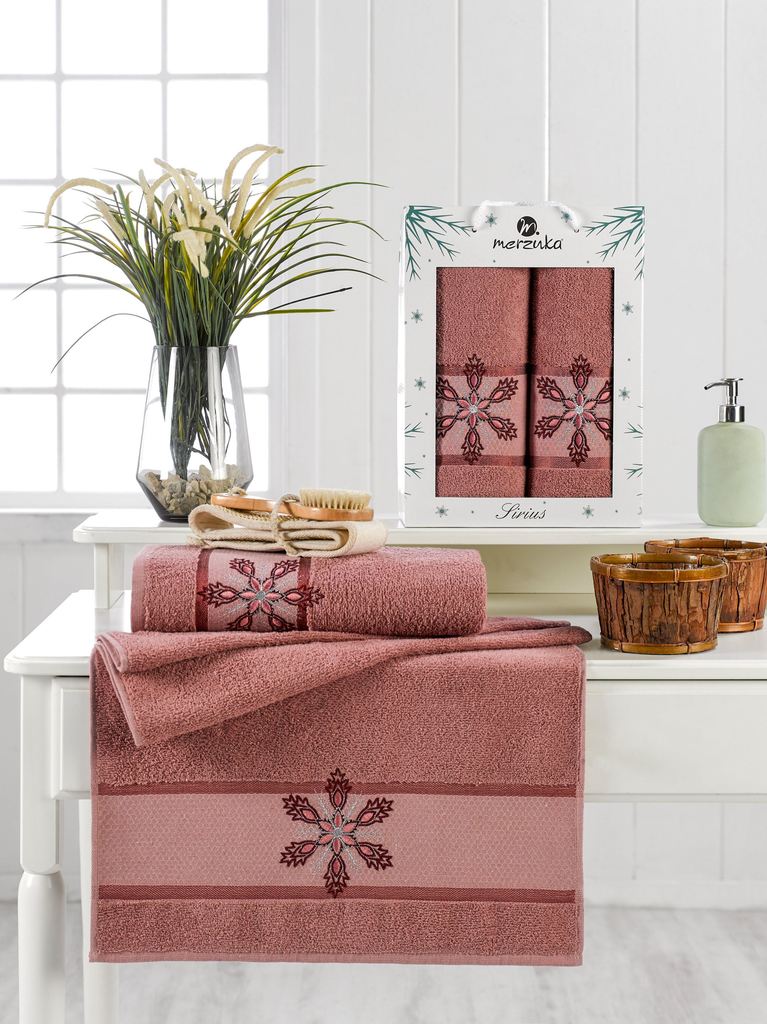 11639 Брусничный SIRIUS махра (50х90+70х140 ) в коробке Набор полотенец MERZUKA