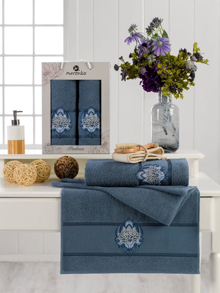 11637 Светло синий PADMA махра (50х90+70х140 ) в коробке Набор полотенец MERZUKA