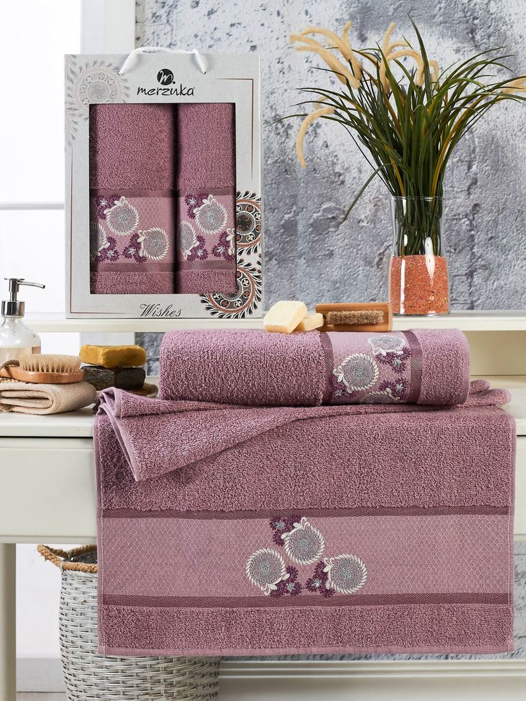 11717  Лиловый WISHES    (50х90+70х140 ) в коробке Набор полотенец MERZUKA