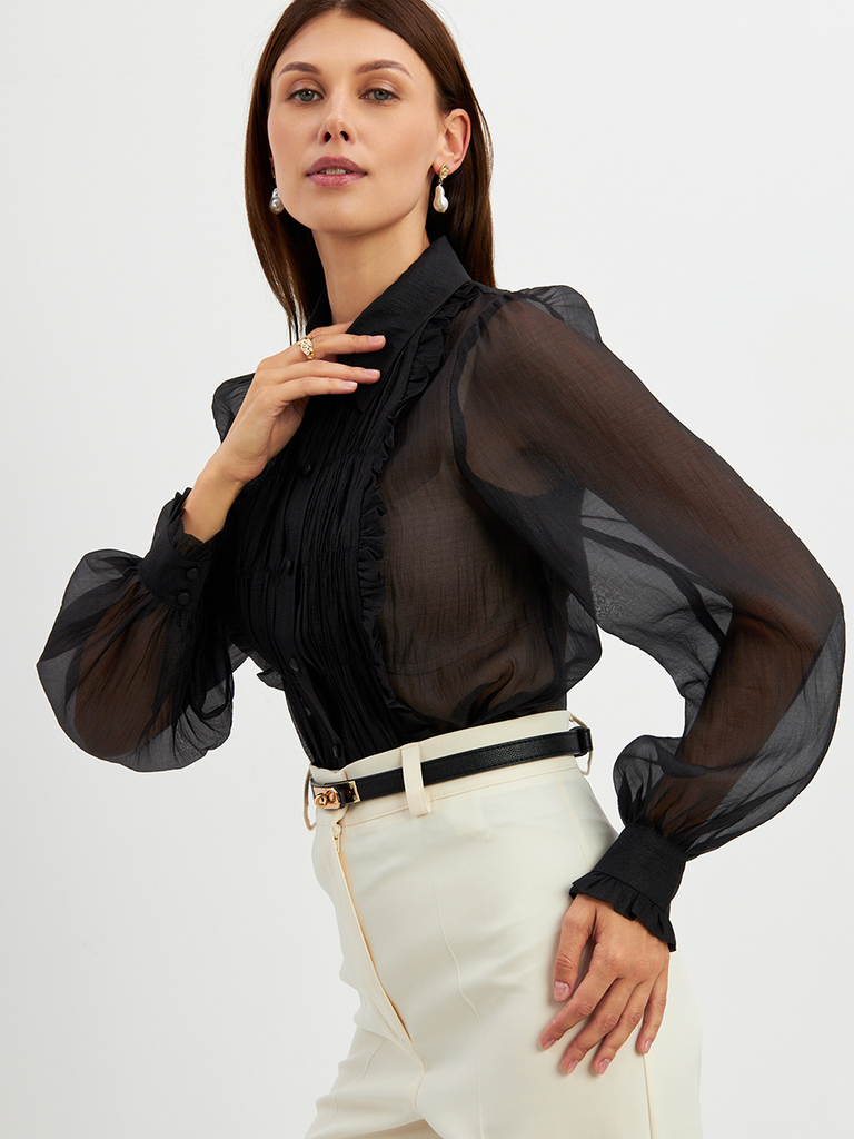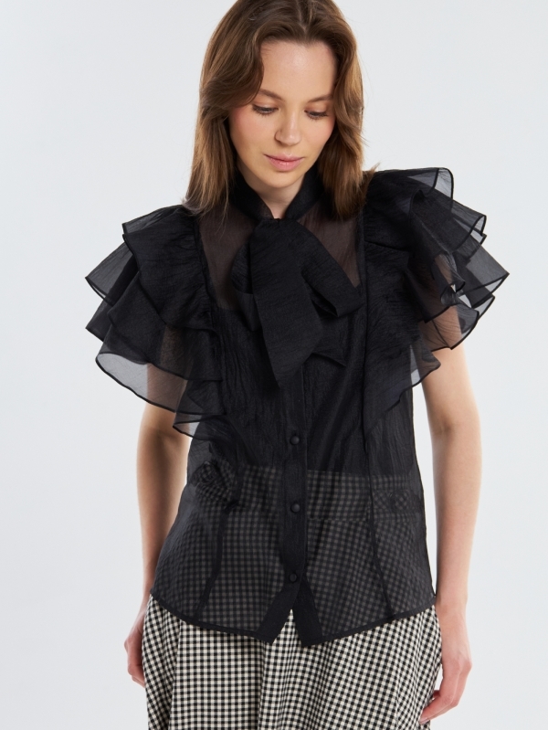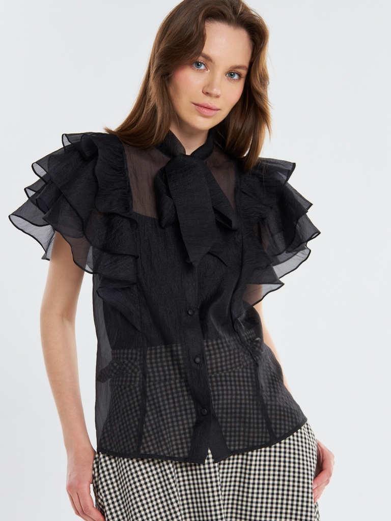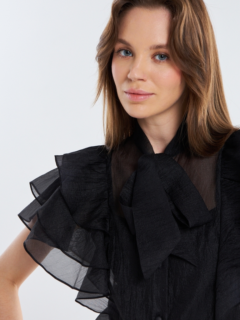 Блузка из органзы с рюшами и бантом OD-929-3 черныйВопросы по товару