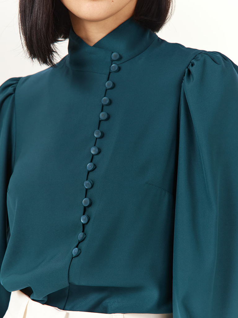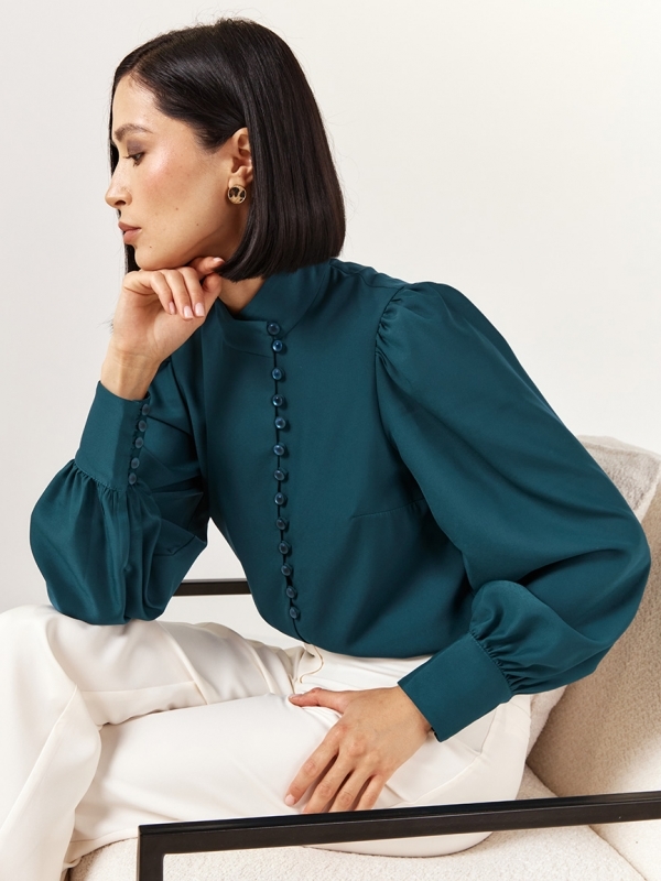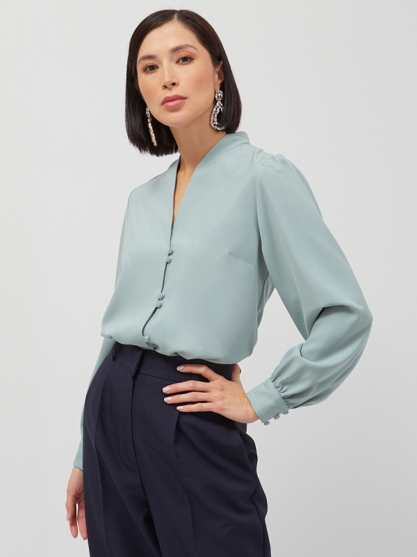 Состав: 45% полиэстер, 35% вискоза, 20% шелк,. Материал: Вискоза, Полиэстер, Шелк. Длина по спинке: 63 см. Длина рукава: 68,6 см. Принт: Однотонный. Рукав: Длинный. Сезон: Осень, Весна, Зима. Силуэт: ... Показать описаниеПрямой. Стиль: Повседневный, Деловой, Вечерний. Тип горловины: V-образный. Блузка прямого силуэта. Из однотонной блузочной ткани. Воротник-стойка с V-образным вырезом.Рукав втачной, длинный со сборкой по плечу и по низу, на манжете. Застежка на навесные петли и пуговицы на ножке. Рост модели 170 см. Изделие на модели 42 р-ра. Длина изделия по спинке 63 см. Подробное описание: https://seller.tantino.ru/bluza-s-vyrezom-sine-zelenaya-od-735-8.html