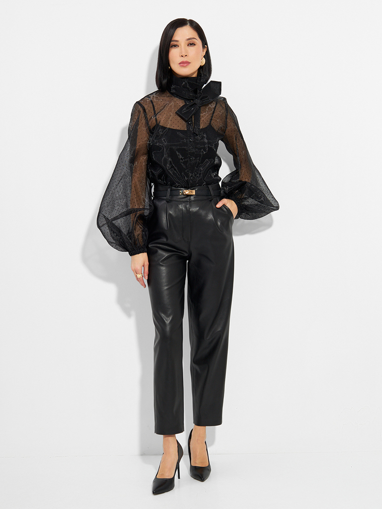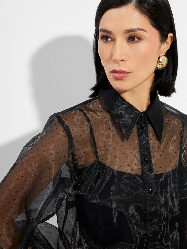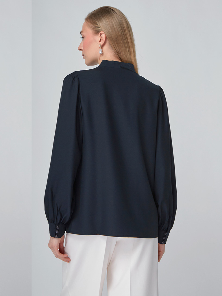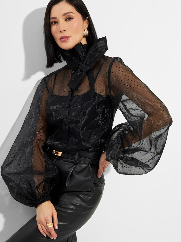 Блузка из органзы с мушками и галстуком OD-986-1 черныйВопросы по товару