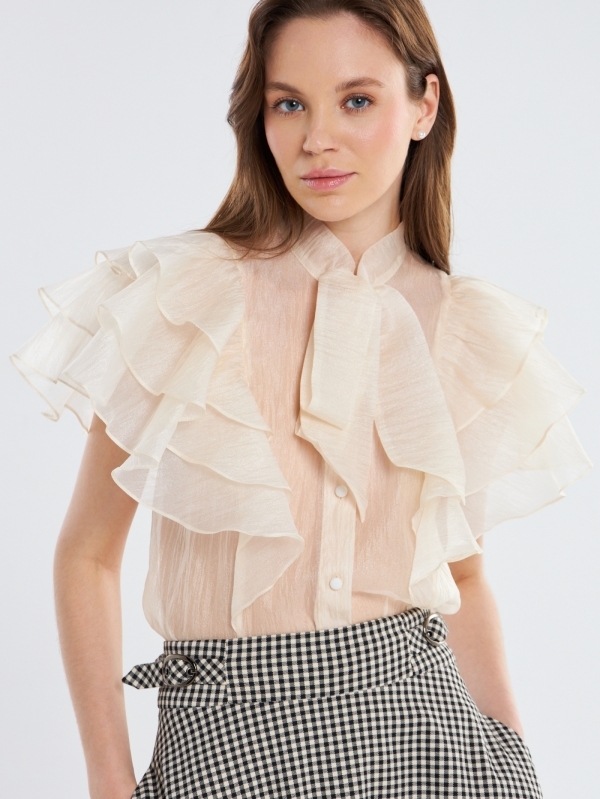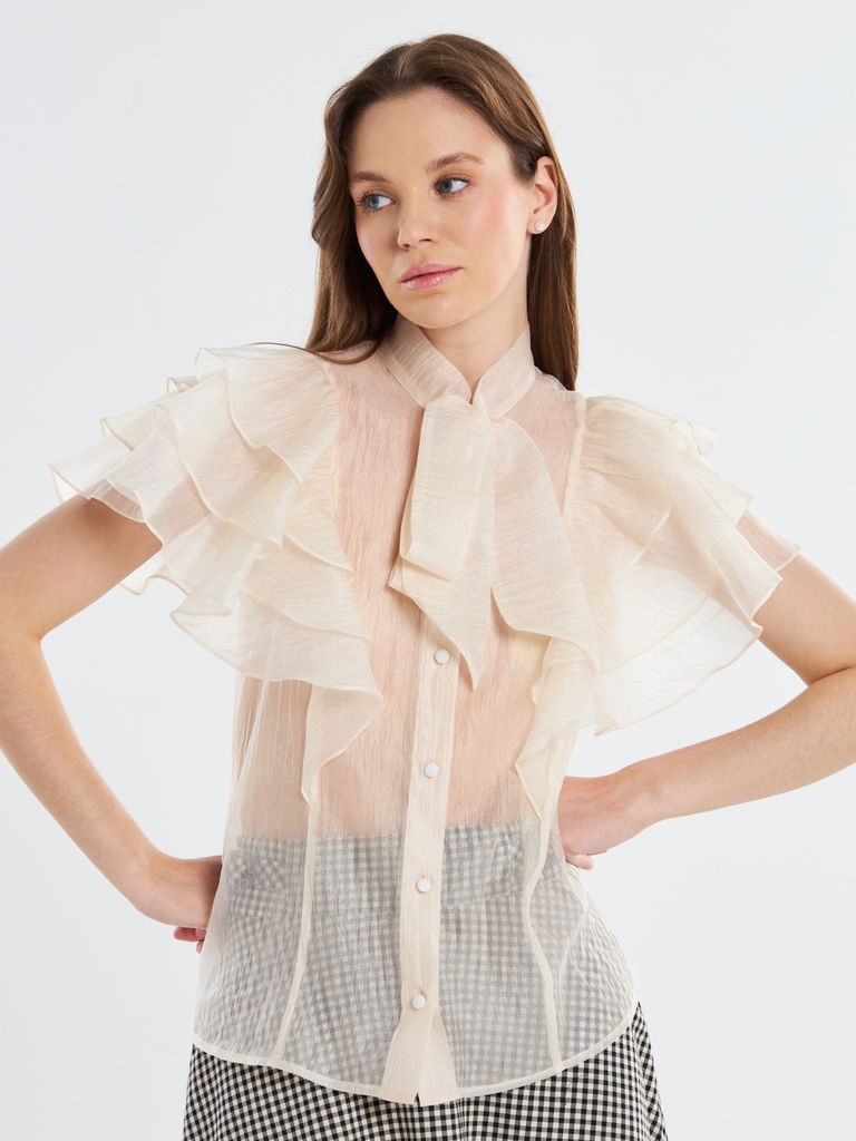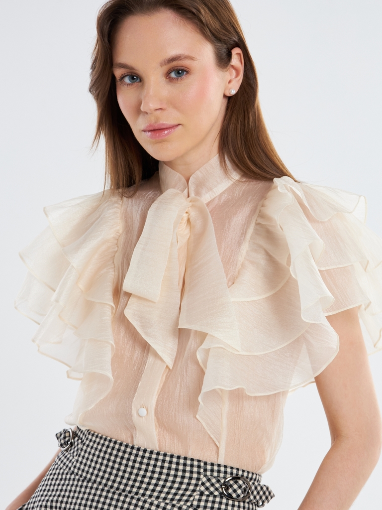 Блузка из органзы с рюшами и бантом OD-929-4 молочныйВопросы по товару