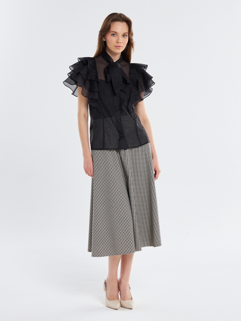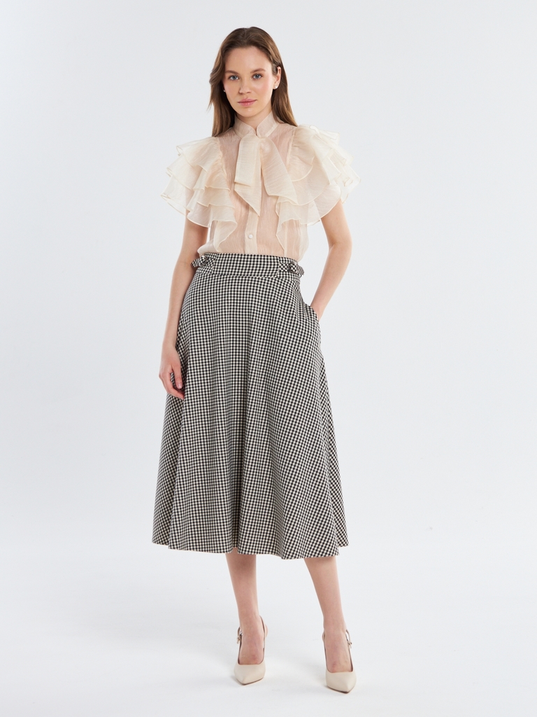Блузка из клетки укороченная OD-857-1 бежево-чернаяВопросы по товару