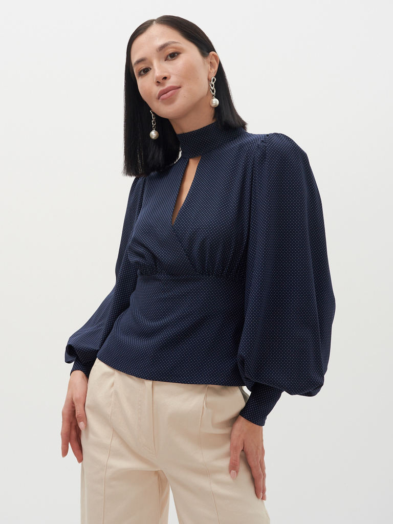 Материал: Полиэстер. Состав: 100% полиэстер. Длина по спинке: 52 см. Длина рукава: 68 см. Принт: Горох. Рукав: Длинный. Сезон: Демисезон. Силуэт: Прилегающий. Стиль: Повседневный, Деловой, Вечерний. Т... Показать описаниеип горловины: Стойка. Блузка прилегающего силуэта. Из ткани софт в мелкий горох. Воротник-стойка. Рукав длинный на манжете со сборкой и сборкой по плечу. По лифу полочки вырез на запах. Отрезная под грудью. Застежка на потайную молнию в боковом шве, и на навесные петли и пуговицы по воротнику спинки и манжету. Рост модели 170 см. Изделие на модели 42 р-ра. Длина изделия по спинке 52 см. Подробное описание: https://seller.tantino.ru/bluzka-iz-tkani-soft-v-melkij-goroh-od-749-1-sinij.html