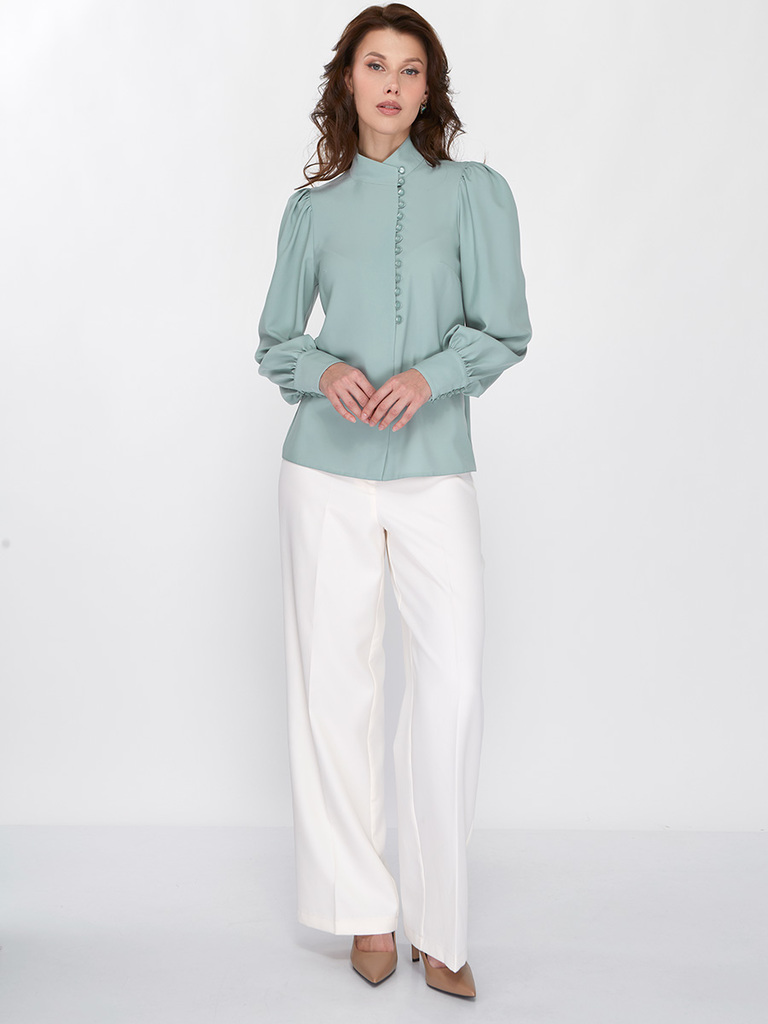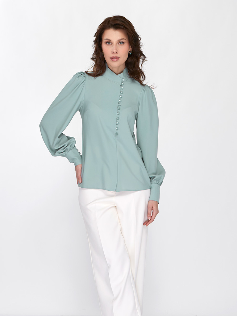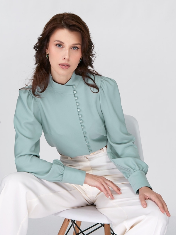 Материал: Вискоза, Полиэстер, Шелк. Состав: 45% полиэстер, 35% вискоза, 20% шелк. Сезон: Демисезон, Осень, Весна, Зима. Силуэт: Прямой. Рукав: Длинный. Стиль: Повседневный, Деловой, Вечерний. Блуза-ко... Показать описаниесоворотка прямого силуэта с длинным рукавом на высокой манжете из плотной блузочной ткани. Воротник и манжеты изделия украшены большим количеством воздушных петель и мелких пуговиц,окрашенных в тон ткани. Рост модели 172 см. Блузка на модели 42-го размера. Машинная деликатная стирка. Подробное описание: https://seller.tantino.ru/bluza-kosovorotka-mnogo-pugovic-od-550-15-mentol.html