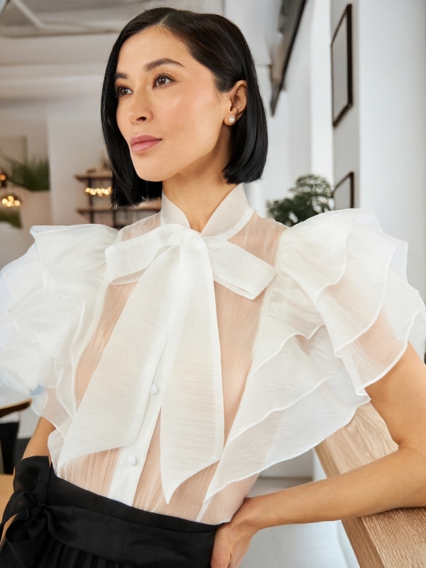 Блузка из органзы с бархатной завязкой и защипами OD-951-1 молочныйВопросы по товару