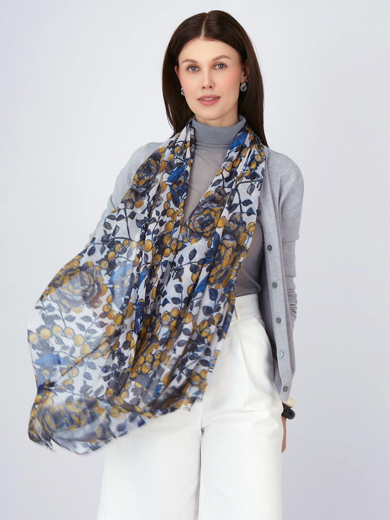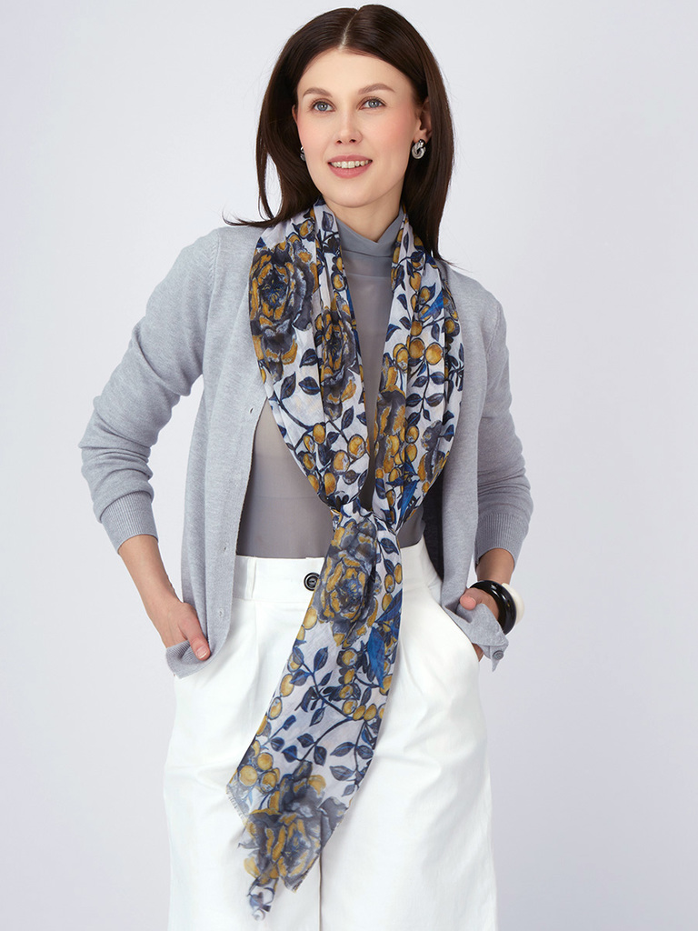 Косынка OD-722-2 белое с цветамиКосынка OD-722-2 белое с цветамиКосынка OD-722-2 белое с цветами