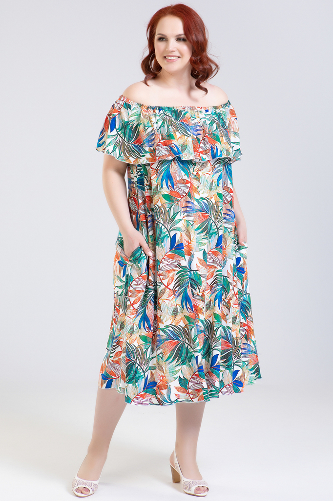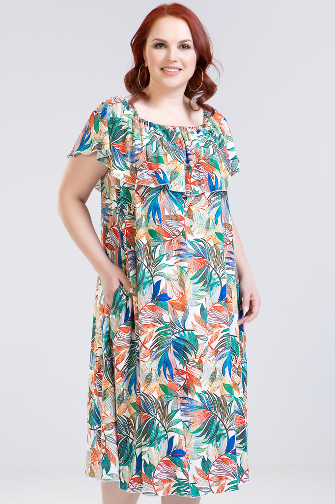 Платье трапециевидного силуэта, с карманами в боковых швах. Горловина круглая с притачным воланом, собраным в сборку эластичной тесьмой.Наименование ткани. Штапель. Силуэт. Трапециевидный. Длина издел... Показать описаниеия. 105. Состав (по процентам). 100% вискоза. Застежка. Нет. Уход. Машинная стирка 30°С. Производитель. Prima linea/Прима линия Рост модели. 172. Cезон. Весна-лето. Размерный ряд. 44-58. Цвет. Мультиколор. Вид материала. Плательная.