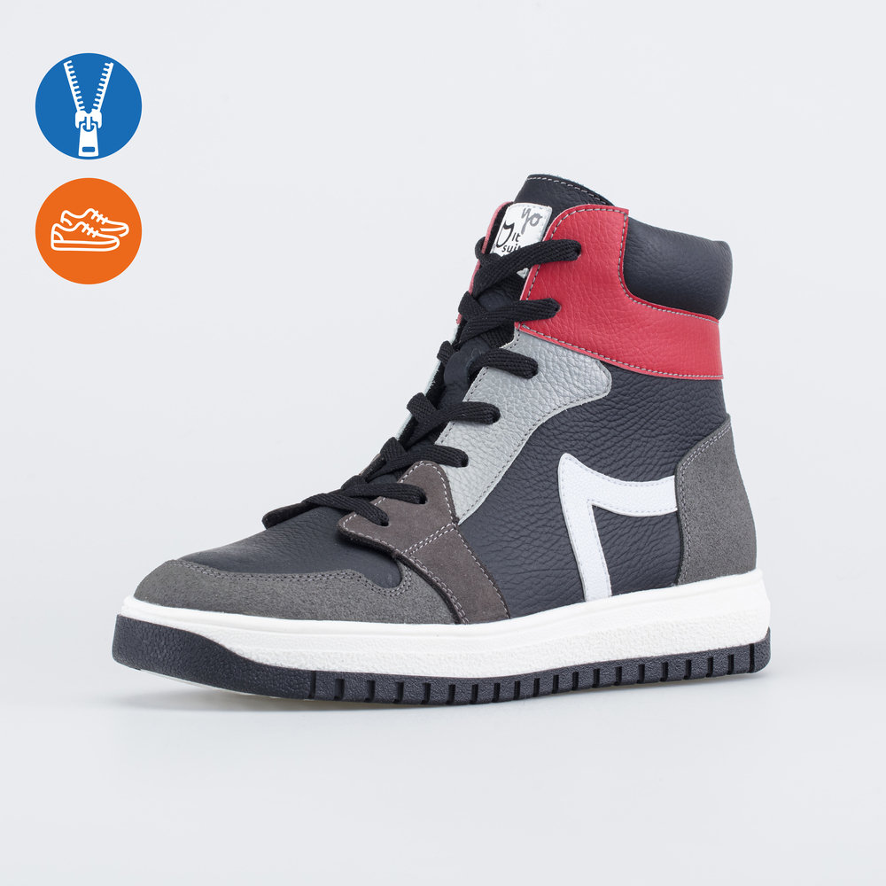 Кожаные зимние ботинки для мальчика, выполненные в тренде колорблок (гармоничное сочетание разных цветов), украшены логотипом Котофей. Верх изготовлен из натуральной кожи. Носочная часть защищена допо... Показать описаниелнительными кожаными накладками с полиуретановым покрытием, продлевающими срок службы обуви. Внутри шерстяной мех из натуральной овечьей шерсти, который отлично согревает, отводит влагу и дарит ощущение уюта. Войлочная стелька снабжена шелковой петелькой, чтобы было удобно доставать для проветривания. Шнурки позволяют отрегулировать обувь по подъему, а молния - быстро обуваться и разуваться. Подошва из ТЭП (термоэластопласта) обеспечивает дополнительную теплоизоляцию и обладает повышенной устойчивостью на зимних дорожках. Модель разработана для детей школьного возраста, поэтому большое внимание уделено правильной анатомии обуви и поддержке стопы. Сделано в России.