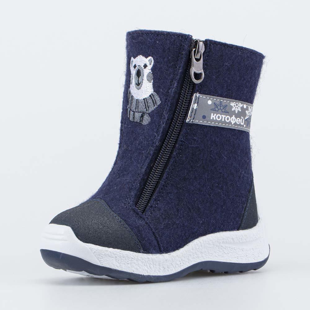 Валенки для мальчика из натурального войлока синего цвета Войлок - гипоаллергенный, дышащий материал, который создаёт благоприятный климат вокруг стопы и дарит сухое тепло. Дополнительно согревает под... Показать описаниекладка - шерстяной мех из натуральной овечьей шерсти. Две липучки-велькро обеспечивают хорошую раскрываемость модели и позволяют быстро обуваться и разуваться. Носочная часть защищена кожаными накладками с полиуретановым покрытием, которые продлевают срок службы обуви и предохраняют ее от химических реагентов. Подошва из ТЭП (термоэластопласта) - гибкая, амортизирующая и очень устойчивая, что особенно важно для зимней обуви. Модель анатомически правильная: имеет небольшой каблучок/танкетку, в меру жёсткий задник и круглый носок. Стелька из натуральной шерсти приформовывается к своду стопы, таким образом создавая индивидуальную анатомическую форму внутреннего пространства в обуви, подходящую только вашему ребенку. Это положительно влияет на правильное развитие стоп и всего опорно-двигательного аппарат