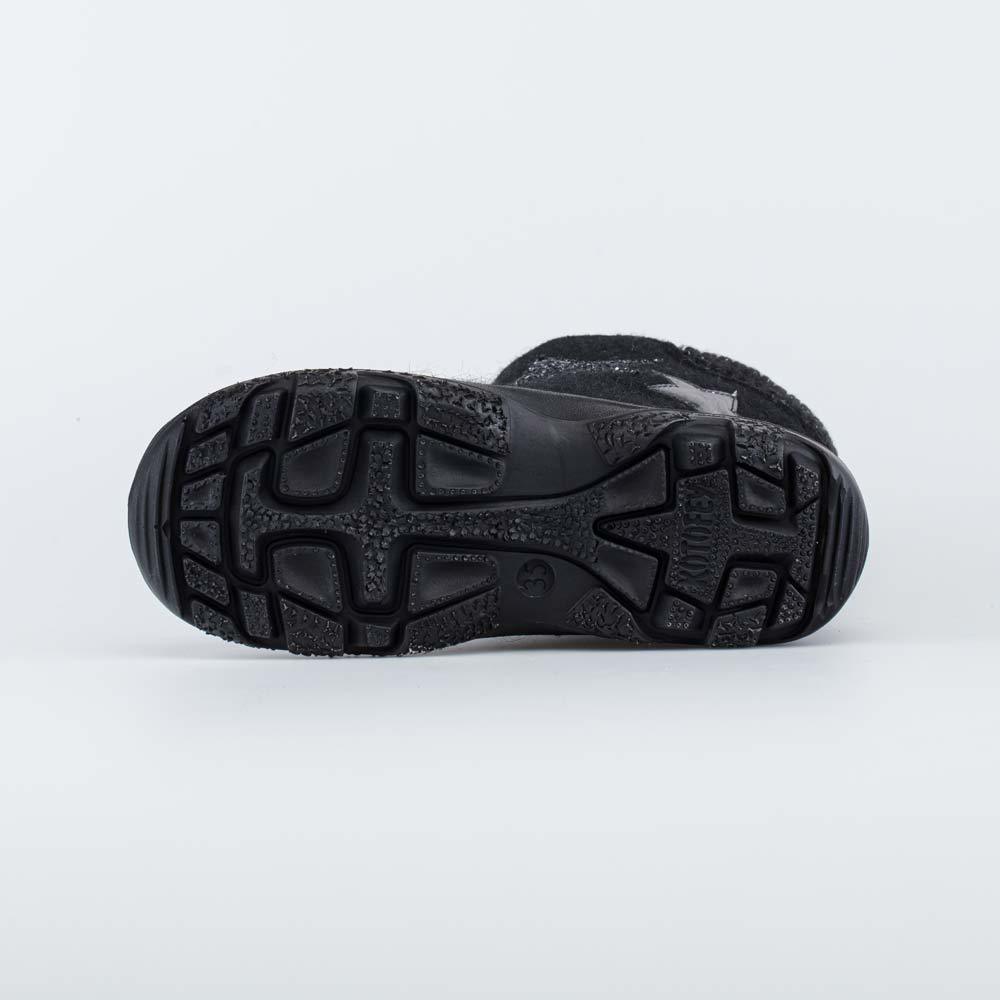 32, 33 поразмерно. Черные валенки для мальчика, стилизованные под высокие ботинки, выполнены из натурального войлока. Войлок плотный, с водоотталкивающими свойствами, дышит и создаёт при этом приятный... Показать описание климат вокруг стопы на улице и в помещении. Материал подкладки - шерстяной мех из натуральной овечьей шерсти. Он отлично сохраняет тепло, отводит влагу от ноги, придает дополнительный комфорт. Две липучки-велькро придают обуви максимальную раскрываемость и позволяют отрегулировать обувь на ноге. По всему периметру модель имеет дополнительную кожаную накладку со специальным полиуретановым покрытием, придающим дополнительную износостойкость и защиту от химических реагентов. Валенки оснащены световозвращающими элементами. Подошва выполнена из полиуретана – легкая и амортизирующая. Имеет накладку из термополиуретана для придания устойчивости на зимних дорожках. Сделано в России.