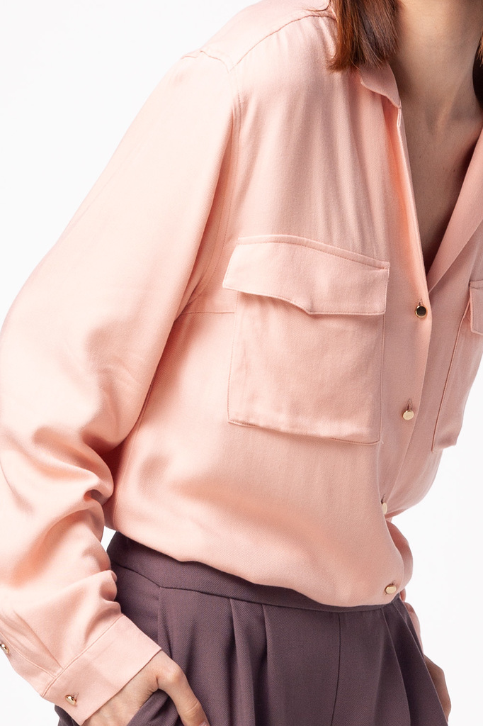 Состав: 55%Вис 45%Лиоцелл (Вис) Параметры модели на первом фото: Рост 172, бюст 88, талия 64, бедра 88 Блузка с имитацией карманов и удлиненными манжетами выполнена из премиальной вискозы и лиоцелла. ... Показать описаниеНа спинке изделия фирменный логотип бренда. Имитация карманов позволяет этому элементу выглядеть аккуратно без складок и фалд, которые вероятны на такой пластичной ткани.Застежка на золотистые пуговицы. Приятная на ощупь ткань охлаждает кожу в жаркую погоду. Отлично впишется в нестрогий офисный дресс-код или в расслабленном повседневном образе с джинсами.