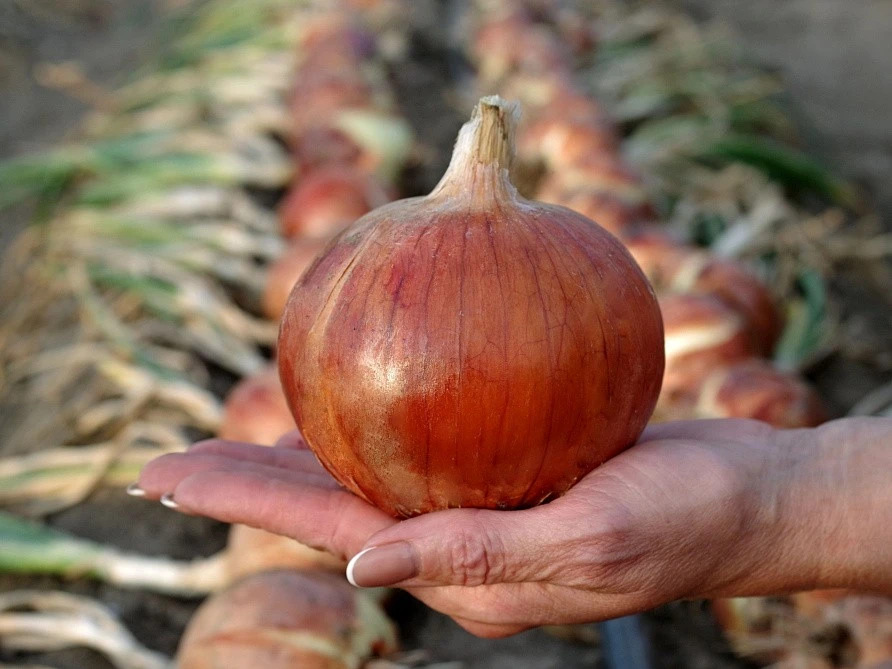 Настоящий рекордсмен на луковых грядках! Сорт среднеспелый, от всходов до массового полегания листвы проходит 110-130 дней. Луковица очень крупная, массой 300-500 г, а при правильной агротехнике – до ... Показать описание0,8 кг! Луковицы имеют очень красивую слегка овальную форму, верхние чешуйка соломенно-желтые, внутренние – белые, толстые (до 1 см), очень сочные, плотно прилегающие друг к другу. Сорт относится к салатным, так как обладает сладким вкусом с легкой приятной остротой. Транспортабельность хорошая, лежкость – до 3 месяцев. Рекомендуется выращивать через рассаду с плотностью посадки 20-30 растений/м2. Урожайность – до 12,0-14,0 кг/м2.