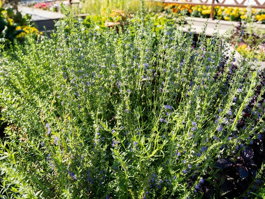 Среднеспелый многолетний полукустарник. От всходов до срезки на зелень в первый год проходит 100 дней, на второй – 50 дней. Растение сильноветвистое и сильнооблиственное, высотой 60 см. Лист среднего ... Показать описаниеразмера, темно-зеленый, с коротким опушением, ланцетовидной формы. Соцветия - красивые колоски с голубыми цветами. Цветение длится с июня по октябрь. Молодые побеги с листьями и цветками в свежем и сушеном виде обладают имбирно-шалфейным ароматом и горьковатым приятным вкусом. Используется в качестве приправы в домашней кулинарии и при консервировании. Растение зимостойкое и засухоустойчивое, любит солнечные места с хорошо дренированной почвой. На одном месте может расти до 10 лет. Посев на рассаду или постоянное место, когда минует угроза заморозков. Глубина заделки семян - 1,0-1,5 см. При температуре +18°С всходы появляются через 12-14 дней.