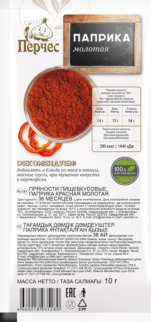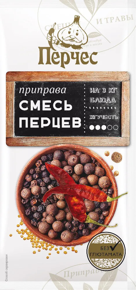 Торговая марка Перчес - это специи и приправы высокого качества по антикризисной цене от производителя! Перчес - торговая марка эконом-сегмента. Несмотря на низкие цены, продукция бренда - высокого качества в стильной упаковке, привлекающей внимание на полке. Производитель ТМ «Перчес» - ООО «Айдиго». Компания известна на рынке уже более 20 лет как поставщик качественного продукта, сертифицированный по стандартам ISO 22000:2018.