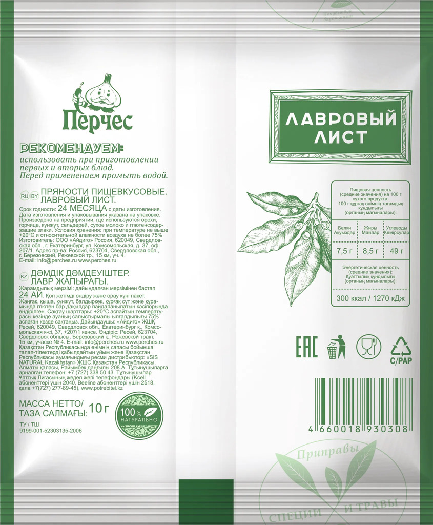 Лавровый лист — это пряность, которая используется в кулинарии для придания блюдам особого вкуса и аромата. Он имеет тёмно-зелёный цвет и плотную структуру. Лавровый лист получают из листьев лаврового... Показать описание дерева, которое произрастает в Средиземноморском регионе. Его добавляют в супы, рагу, соусы, маринады и многие другие блюда. Лавровый лист придаёт еде приятный аромат и вкус, а также помогает улучшить пищеварение. Добавляйте его по вкусу за несколько минут до окончания приготовления