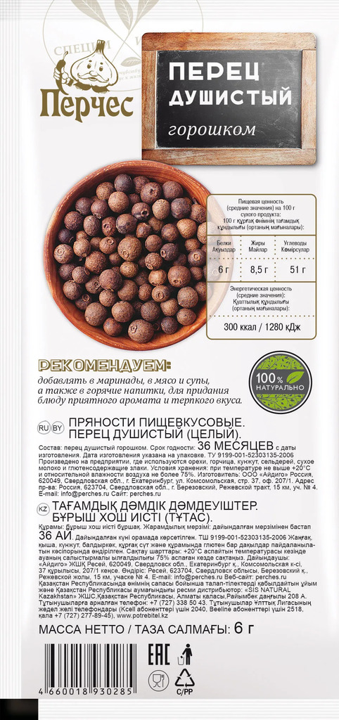 Аромат душистого перца сочетает в себе одновременно нотки гвоздики, корицы, мускатного ореха и черного перца, поэтому его называют «all spice» - универсальная пряность. Цельные горошины добавляют в ма... Показать описаниеринады, в мясо и супы, а также в горячие напитки