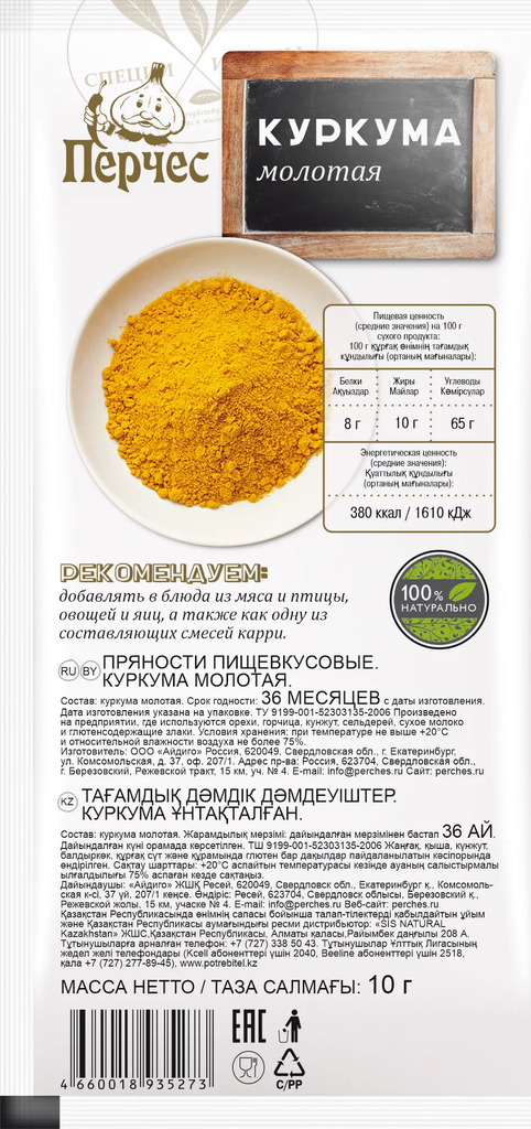 Куркума — это специя, которая известна своим ярким жёлтым цветом и слегка пряным вкусом. Куркума широко используется в кулинарии разных стран, особенно в Индии, где она является одним из основных ингр... Показать описаниеедиентов карри. Её добавляют в супы, рагу, соусы, рис, а также в различные мясные и овощные блюда. Куркуму рекомендуют добавлять к блюдам из мяса и птицы, овощей и яиц, а также как одну из главных составляющих смесей карри