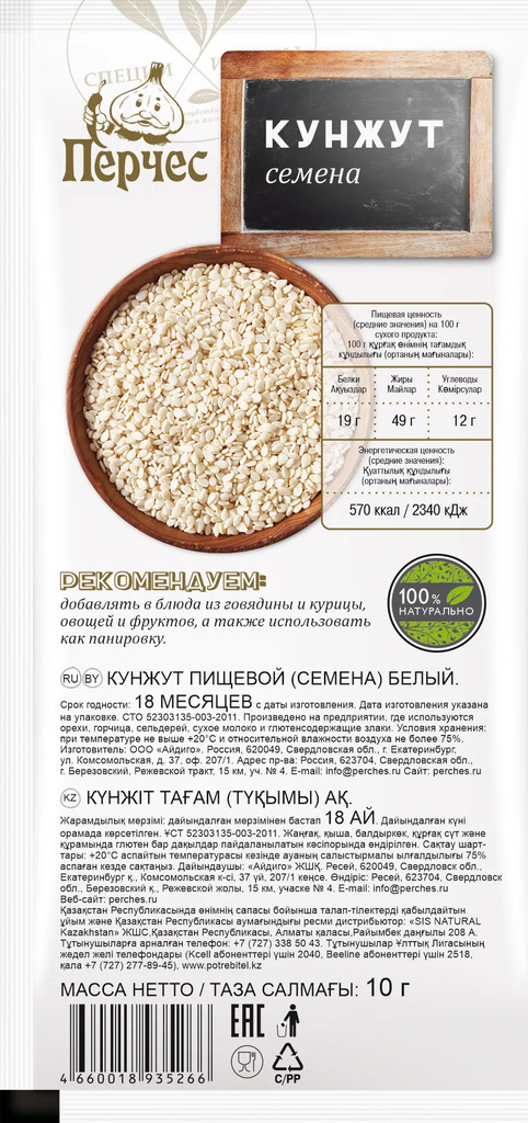 Семена кунжута обладают не только сладковатым ореховым вкусом и интересным внешним видом, но и целым рядом полезных свойств. Кунжут содержит множество витаминов и минеральных веществ. Хрустящие пряные... Показать описание семечки могут служить в качестве присыпки и панировки. Семена кунжута не только используются для посыпки выпечки, но также прекрасны в блюдах из говядины и курицы, в овощных и фруктовых салатах, а также в качестве панировки
