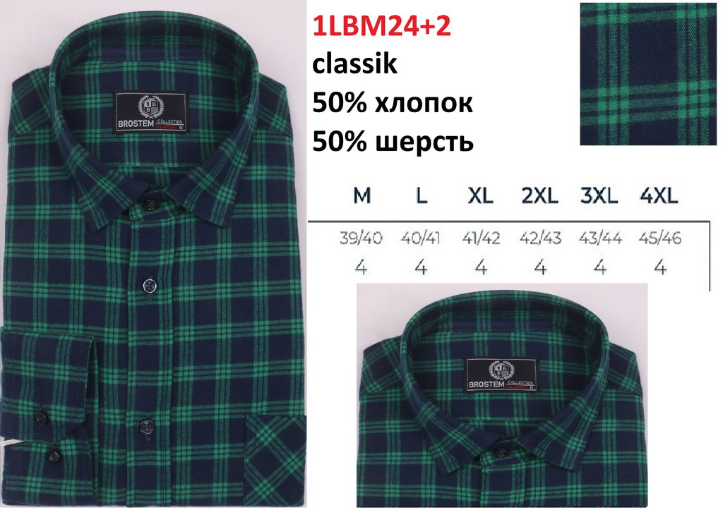1LBR087-1 Сорочка муж. длин. рукав, кашемир, BROSTEM (1) Вопросы по товару