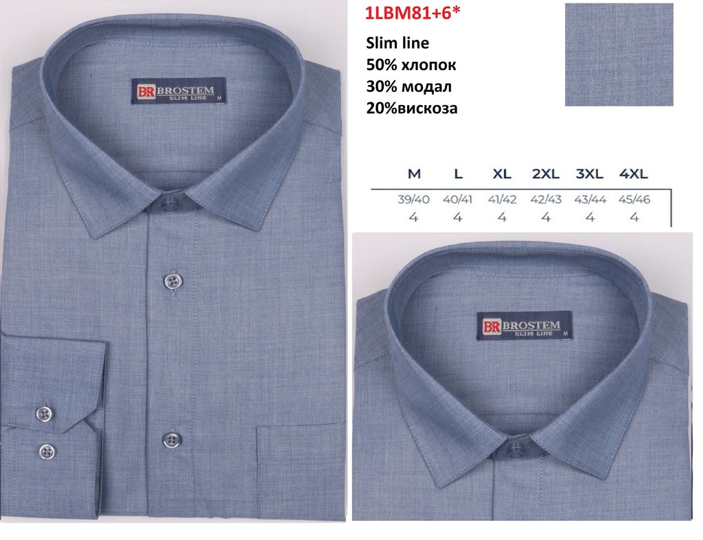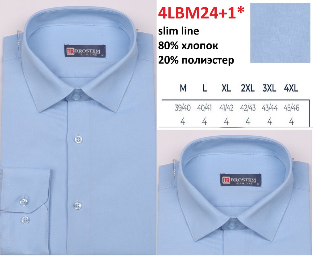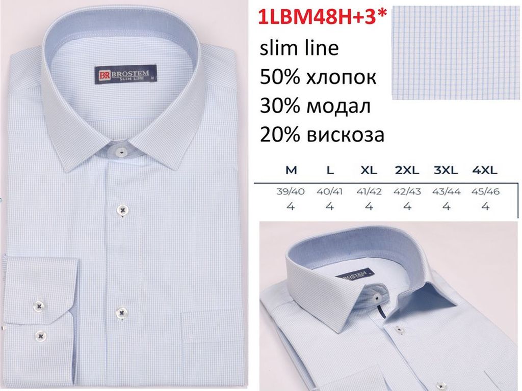 1LBM48H+1* (L-4XL) 6шт. Сорочка мужская, дл.рукав, полупритал., голубой, BROSTEM Вопросы по товару