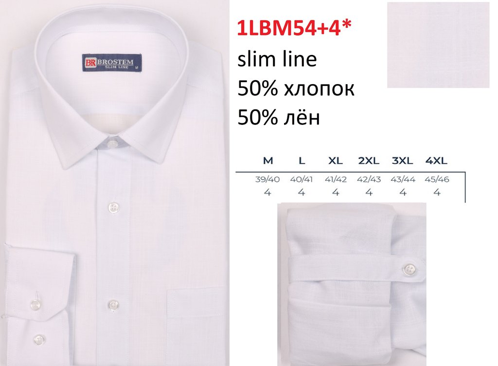 1LBM54+4* Сорочка муж. длин. рукав, полупритал., белый, BROSTEM Вопросы по товару