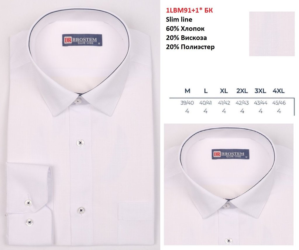 *4701A** Сорочка муж. длин. рукав, притал., белый, BROSTEM (2) Вопросы по товару