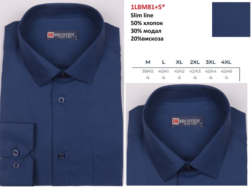 1LBM45+4** Сорочка муж. длин. рукав, притал., темно-синий, BROSTEM Вопросы по товару