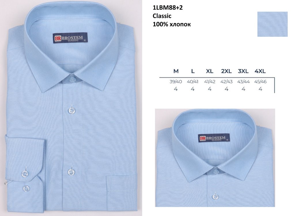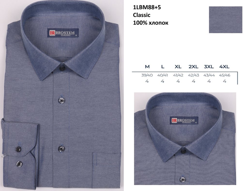 1LBM88+5 Сорочка муж. длин. рукав, классика, синий, BROSTEM Вопросы по товару