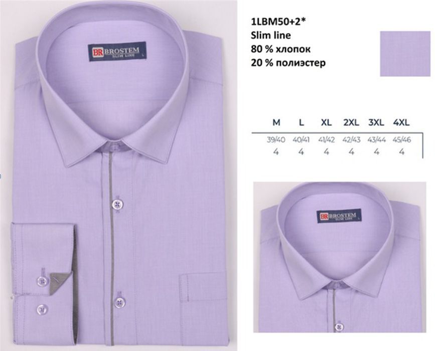 1LBM48H+2* (L-4XL) 6шт. Сорочка мужская, дл.рукав, полупритал., сиреневый, BROSTEM Вопросы по товару