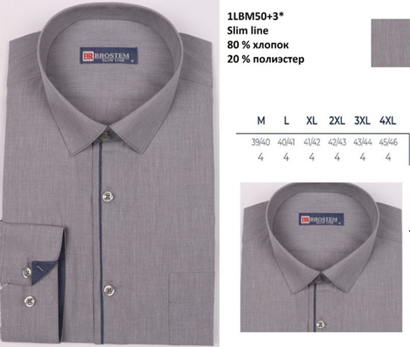 1LBM50+3* Сорочка муж. длин. рукав, полупритал., BROSTEM Вопросы по товару