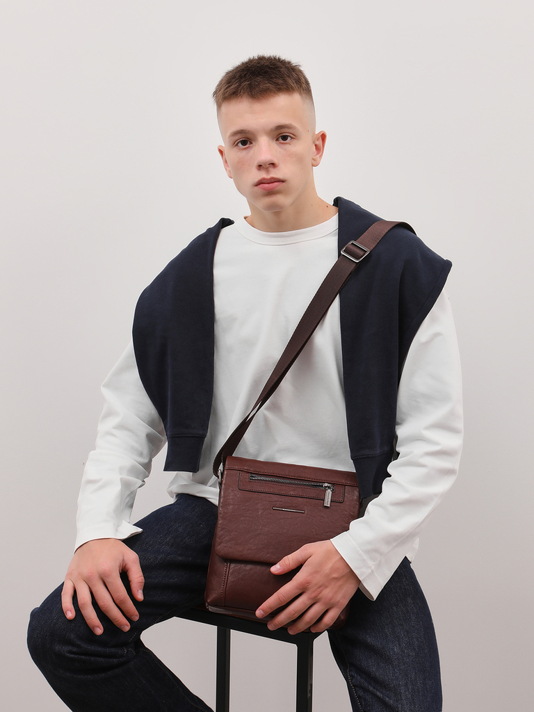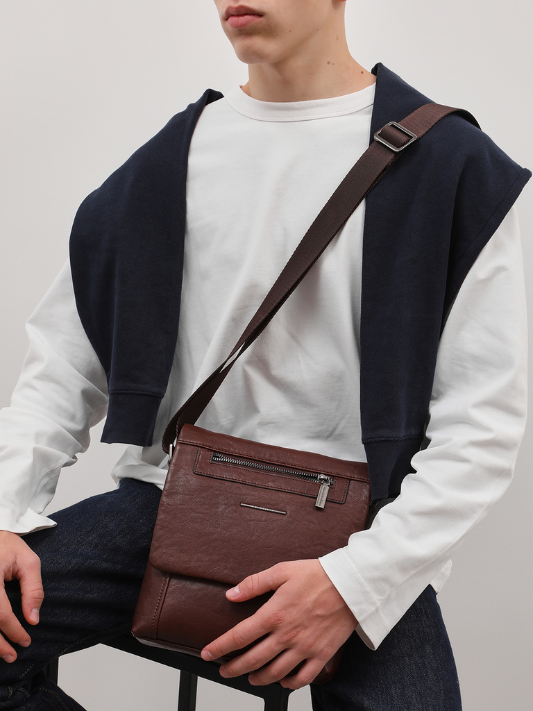 Сумка-планшет с передним клапаном с карманом на молнии в винтажной коже коричневого цвета от Alessandro Beato Длина сумки Alessandro Beato (Алессандро Беато) - 21,5 см (по дну), 21,5 см (по верхн... Показать описаниеему краю), ширина по дну - 6 см, высота - 27 см. Сумочка закрывается на молнию и клапаном на магнитную кнопку. Внутри сбоку карман на молнии. Снаружи спереди и сзади отделения на магнитных кнопках. Носится на плече, текстильный ремешок регулируется по длине.