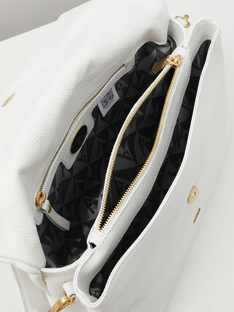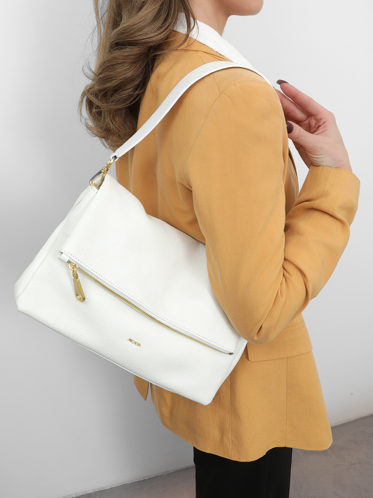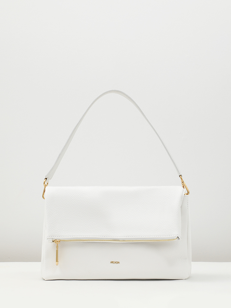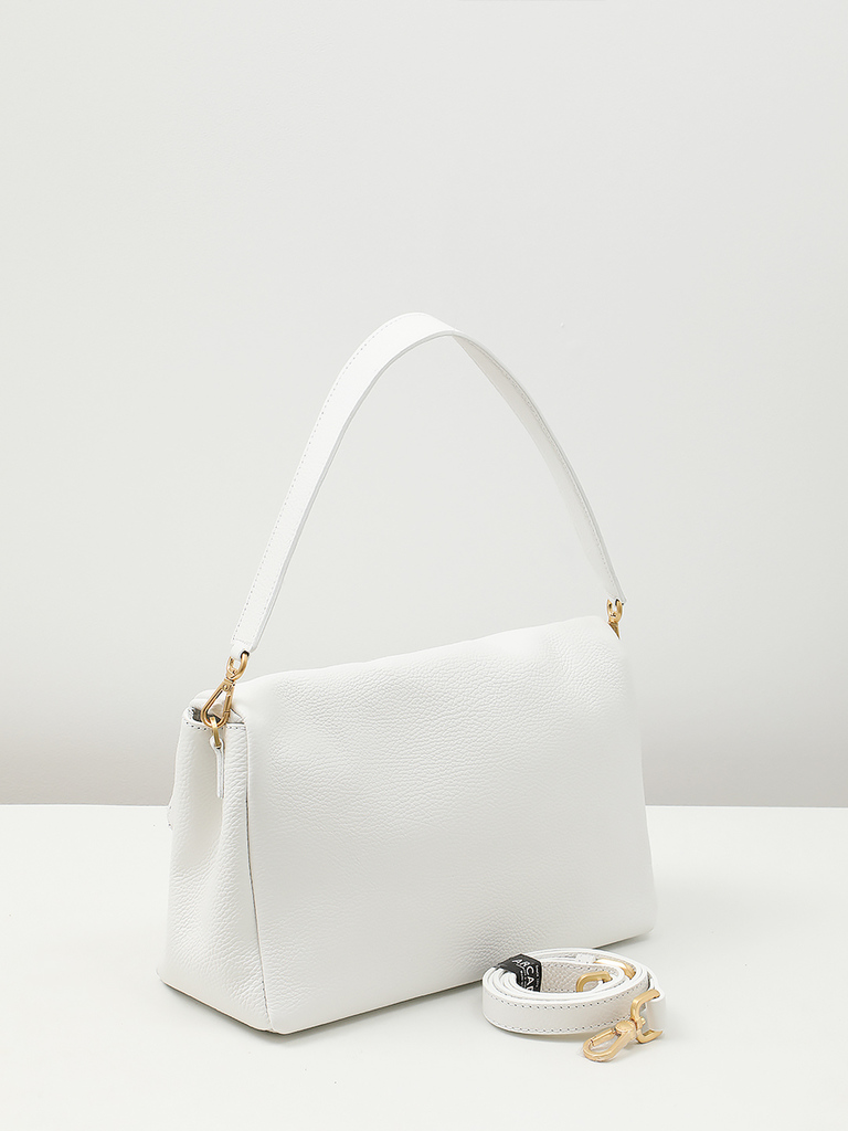Сумка на плечо с именным подкладом от ARCADIA в белом цвете Материал: натуральная кожа Размеры: Длина по дну: 31 см Ширина по дну: 11,5 см Высота: 20,5 см Общая высота с ручкой: 43 см Описание: Стильн... Показать описаниеая сумка от итальянского бренда ARCADIA выполнена из натуральной кожи, декорирована логотипом бренда золотого оттенка. Данная модель закрывается клапаном на магнит, носится на сгибе руки, в руке или на плече на регулируемом ремне, максимальная длина которого 128 см Внутри: центральное отделение на молнии, боковой карман на молнии. В клапане расположен глубокий карман на молнии Производитель: Arcadia s.r.l., Италия Расположение производства: Италия