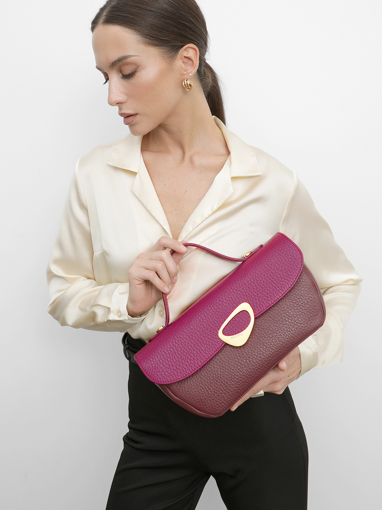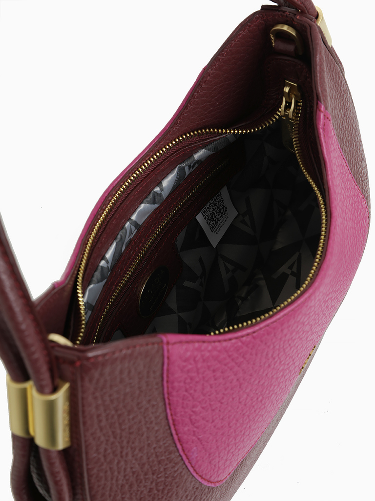 Небольшое двухцветное хобо от ARCADIA в бордово-розовом оттенке Материал: натуральная кожа Размеры: Длина по середине сумки: 30 см Длина по верхнему краю: 22 см Ширина по дну: 6 см Высота: 19,5 см (по... Показать описание центру) Общая высота с ручками: 37 см Описание: Стильная сумка классической формы от итальянского бренда ARCADIA выполнена из натуральной кожи, декорирована брендированной фурнитурой. Данная модель закрывается на молнию, носится на сгибе руки, в руке или на плече. Прилагается длинный регулируемый ремень на плечо, максимальная длина - 131 см. Прилагается фирменный пыльник. Внутри: боковой карман на молнии, открытое отделение для мелочей Производитель: Arcadia s.r.l., Италия Расположение производства: Италия