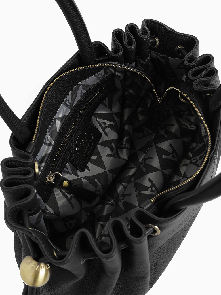 Чёрный сэтчел CALIPSO от ARCADIA в размере M Материал: натуральная кожа Размеры: Длина по дну: 36 см Длина по верхнему краю: 33 см Ширина по дну: 6 см Высота: 22 см (по центру) Общая высота с ручкой: ... Показать описание30 см Описание: Стильная сумка футуристической формы от итальянского бренда ARCADIA выполнена из натуральной кожи, декорирована брендированной пластиной. Данная модель закрывается клапаном на магнитную кнопку, носится на сгибе руки, в руке или на плече на регулируемом ремне. Прилагается фирменный пыльник. Внутри: одно отделение, боковой карман для документов на молнии Снаружи: на дне металлические ножки Производитель: Arcadia s.r.l., Италия Расположение производства: Италия