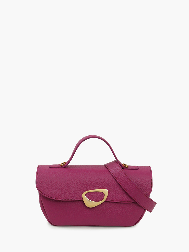 Лаковый сэтчел CALIPSO от ARCADIA в размере S в цвете magenta Материал: натуральная лаковая кожа Размеры: Длина по дну: 29 см Длина по верхнему краю: 26 см Ширина по дну: 5 см Высота: 19 см (по центру... Показать описание) Общая высота с ручкой: 27 см Описание: Стильная сумка футуристической формы от итальянского бренда ARCADIA выполнена из натуральной лаковой кожи, декорирована брендированной пластиной. Данная модель закрывается клапаном на магнитную кнопку, носится на сгибе руки, в руке или на плече на регулируемом ремне. Прилагается фирменный пыльник. Внутри: одно отделение, боковой карман на молнии Снаружи: на дне металлические ножки Производитель: Arcadia s.r.l., Италия Расположение производства: Италия