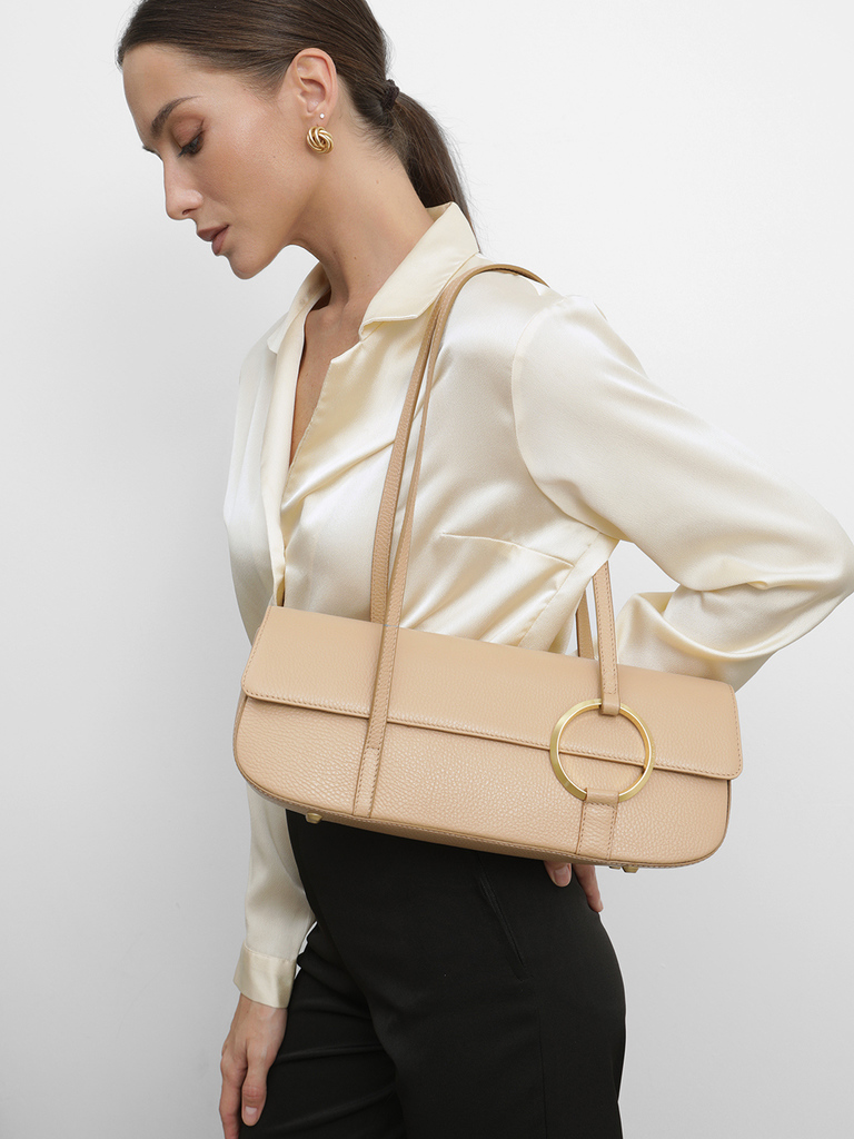Багет из натуральной кожи в песочном цвете с лимитированной фурнитурой ARCADIA Материал: натуральная кожа Размеры: Длина по дну: 35 см Длина по верхнему краю: 34 см Ширина по дну: 9 см Высота: 15 см (... Показать описаниепо центру) Общая высота с ручками: 43 см Описание: Стильная сумка-багет от итальянского бренда ARCADIA выполнена из натуральной кожи. Данная модель закрывается клапаном на магнитные кнопки, носится на сгибе руки, в руке или на плече. Прилагается фирменный пыльник. Внутри: боковой карман на молнии для мелочей Снаружи: на дне металлические ножки Производитель: Arcadia s.r.l., Италия Расположение производства: Италия