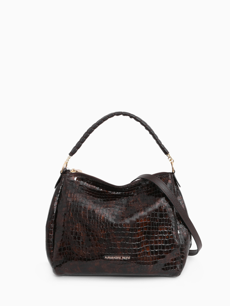Кросс-боди от Alessandro Beato из натуральной лаковой кожи в коричневом цвете Длина сумки Алессандро Беато (Alessandro Beato) - 27 см, ширина по дну - 15 см, высота - 24 см, общая высота - 35 см. Сумк... Показать описаниеа закрывается на молнию. Внутри центральное отделение на молнии, сбоку карман на молнии, карманы для мелочей. Снаружи сзади карман на молнии. Сумка носится в руке или через плечо. Длина ремешка регулируется. Лёгкая и комфортная модель!