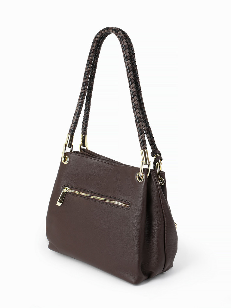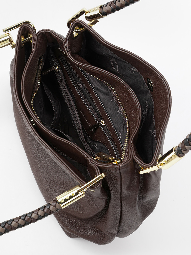 Шоппер с длинными плетёными ручками от Alessandro Beato из кожи коричневого цвета Длина сумки Алессандро Беато (Alessandro Beato) - 29 см (по дну), 24 см (по верхнему краю), ширина по дну - 13 см, выс... Показать описаниеота - 25 см, общая высота с ручками - 42 см. Сумочка состоит из трех автономных отделений, центральное закрывается на молнию, боковые на магнитные кнопки. Внутри сбоку отделение на молнии, карманы для мелочей. Снаружи сзади карман на молнии. Сумочка носится на плече или на сгибе руки. Удобная практичная повседневная сумочка!