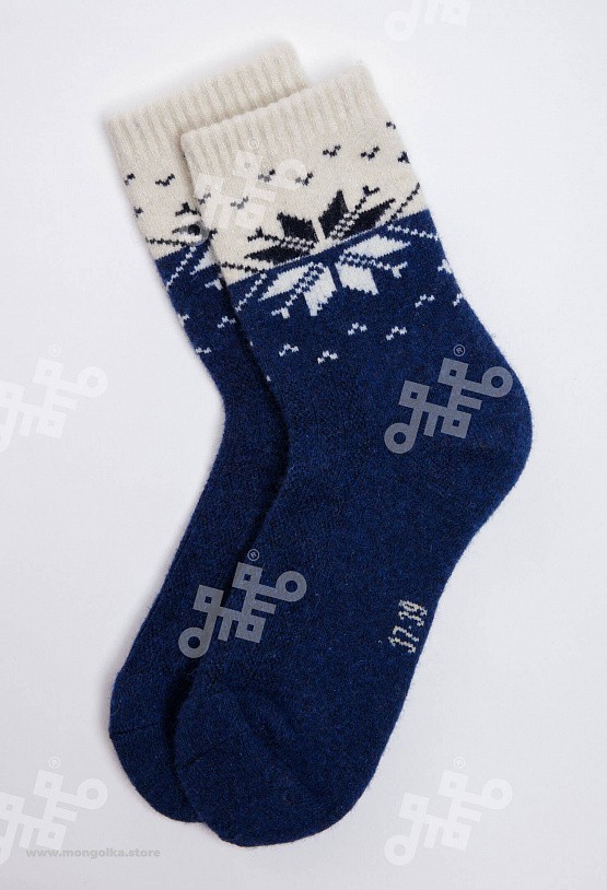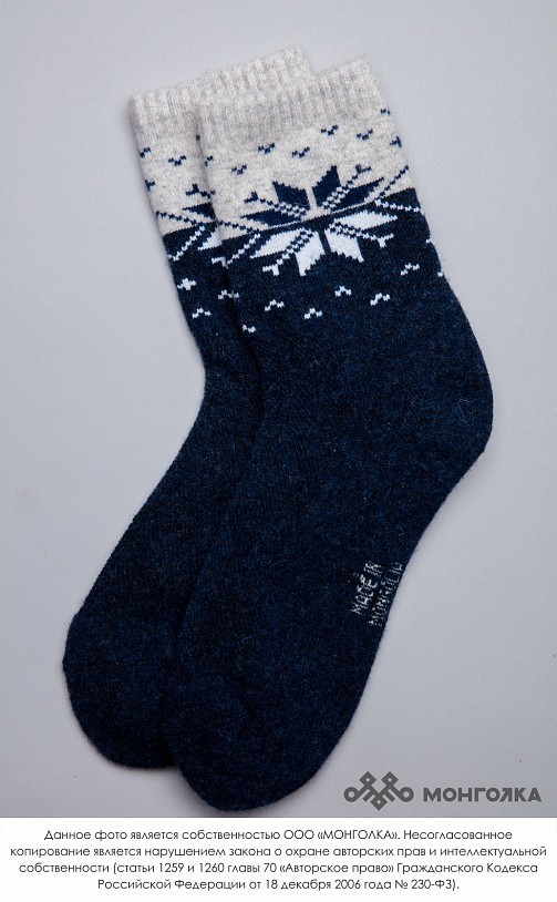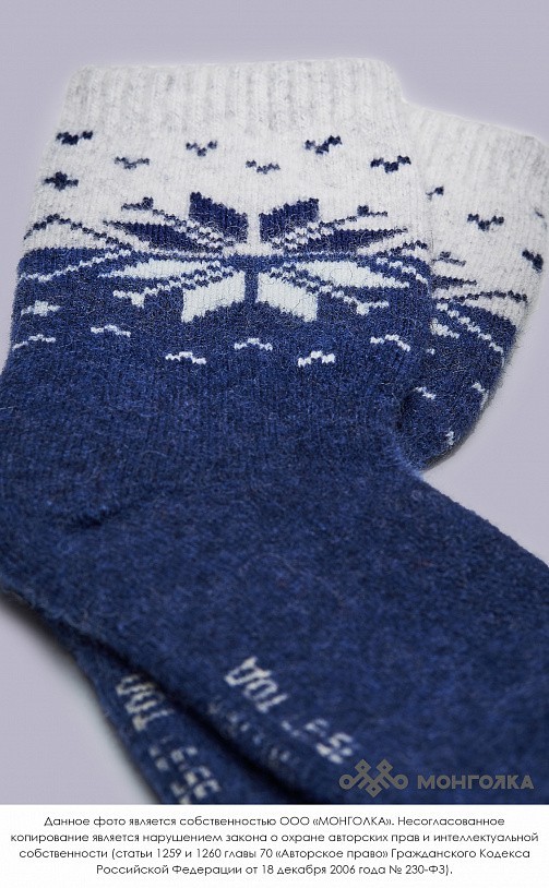 Носки из овечьей шерсти сохраняют ноги в тепле в любую погоду, при этом аккуратно смотрятся и плотно облегают стопу. В шерстяных носках ногам будет комфортно, ведь они хорошо фиксируются и не стесняют... Показать описание движение, приятные на ощупь и не колются. Носки из шерсти монгольской овцы износостойкие и будут радовать долгое время, связаны в технологии двойной вязки, а на подошве толщина материала увеличена. В составе носков 70% натуральной овечьей шерсти, которая обладает обезболивающими, противовоспалительными свойствами, из-за чего носки помогут при болях в суставах. Из-за свойств натуральной шерсти носки отводят лишнюю влагу и дарят чувство тепла и сухости в любую погоду. Теплые носки сочетаются с любым образом, поэтому в них будет приятно ходить как дома, так и надевать с зимней обувью. Носки подойдут как мужчинам, так и женщинам и станут приятным подарком для близких. В нашем ассортименте вы найдете еще больше товаров из натуральной шерсти, доставленных напрямую из Монголии. * Производитель: Монголия, TOD * Состав: 70% шерсть монгольской овцы, 30% вискоза * Размер: 34-45 * Цвет: синий с рисунком * Полноразмерные, соответствуют размеру обуви * Укрепленная стопа