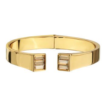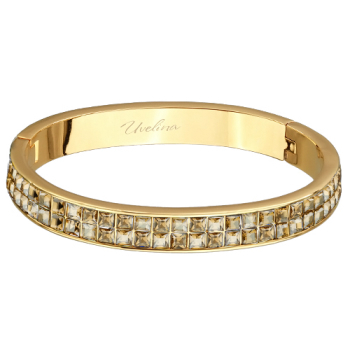 Изготовлено из ювелирного сплава на основе латуни с гальваническим покрытием золотом. Изделие украшают кристаллы SW цвета шампань. Пружинный механизм отвода. Ширина браслета 0, 8см.