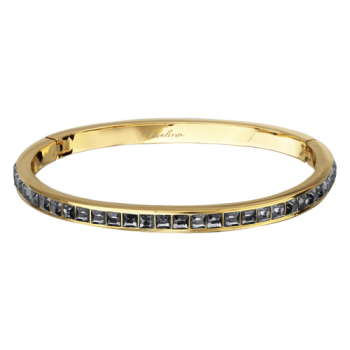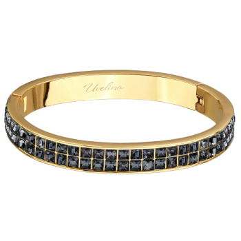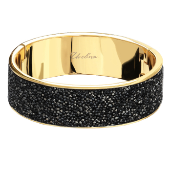 Изготовлено из ювелирного сплава на основе латуни с гальваническим покрытием золотом. Изделие украшают кристаллы SW темно-серого цвета. Ширина браслета 5мм