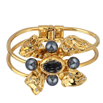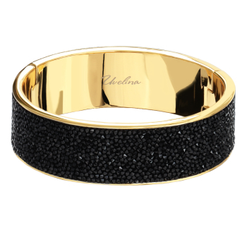 Изготовлено из ювелирного сплава на основе латуни с гальваническим покрытием золотом. Изделие украшают кристаллы SW темно-серого цвета. Пружинный механизм отвода. Ширина браслета 8мм