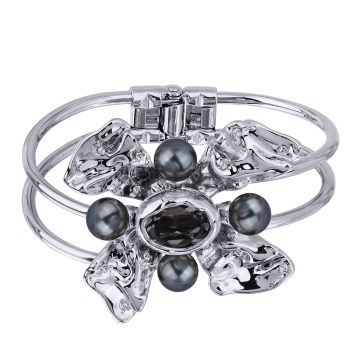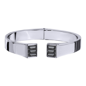 Изготовлено из ювелирного сплава на основе латуни с гальваническим покрытием родием. Изделие украшают кристаллы SW темно-серого цвета. Ширина браслета 5мм